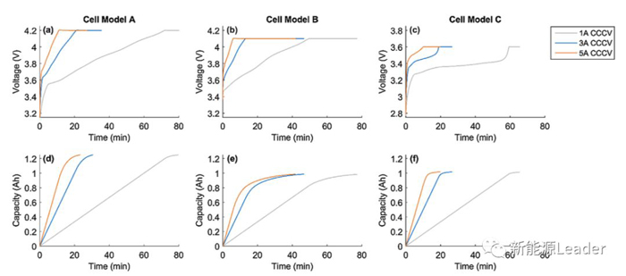 所谓的加速充电模式是在CCCV充电模式的基础上增加了一个大电流的CC或者恒功率充电过程,从而达到降低充电时间的目的(如下图e所示),有研究表明加速充电模式能够有效的提升锂电池的充电效率,同时又不会对锂电池的循环寿命产生显著的影响。